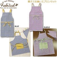 アビチュアルシリーズ Merilメリル 親子でお揃いエプロンセット(ペアエプロン+キッズ用三角巾) チェック柄 No.0879 PURPLE